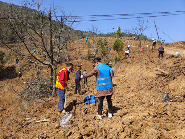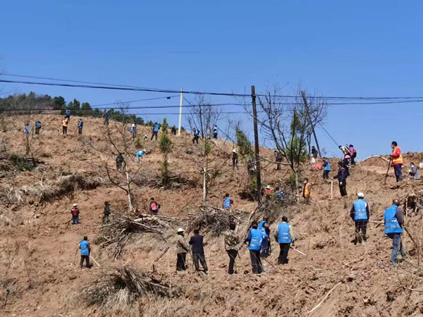 在植樹節(jié)到來之際,3月9日,商洛市丹鳳縣林業(yè)局、雙儲(chǔ)林場(chǎng)建設(shè)公司組織120余人的造林專業(yè)隊(duì)伍在商鎮(zhèn)魚嶺村栽植大苗連翹。