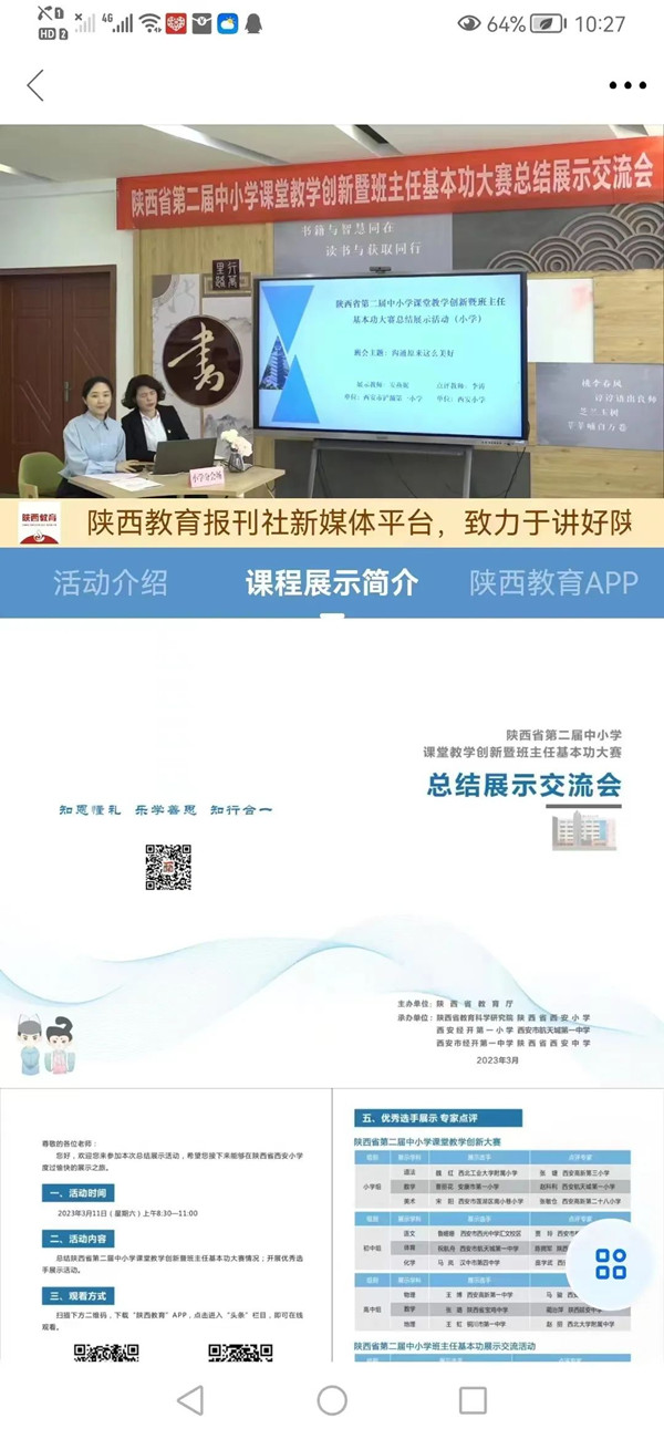 最是一年春好處,研修學(xué)習(xí)正當(dāng)時(shí)。為加強(qiáng)中小學(xué)班主任隊(duì)伍建設(shè),鍛煉一支師德高尚、專業(yè)能力強(qiáng)、有教育智慧的班主任隊(duì)伍,展示新時(shí)代班主任的綜合素質(zhì),2023年3月11上午,陜西省第二屆中小學(xué)課堂教學(xué)創(chuàng)新暨班主任基本功大賽展示活動(dòng)在陜西省西安小學(xué)舉辦,商州區(qū)第一小學(xué)老師們相約云端,共赴教育教學(xué)盛會(huì)。