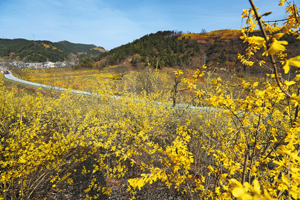 朵朵金黃的連翹花,不僅裝飾了山谷,成了當?shù)剞r(nóng)戶的“致富花”,也吸引了越來越多的游客前來觀賞,連翹谷成了遠近聞名的網(wǎng)紅打卡地。