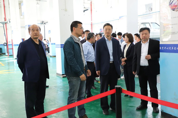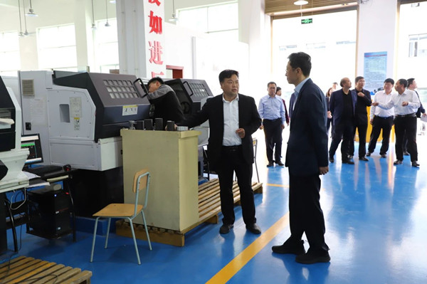 調(diào)研組一行實(shí)地查看了山陽(yáng)縣職業(yè)教育中心汽修、焊接、數(shù)控等專業(yè)實(shí)訓(xùn)室,觀看了學(xué)生技能成果展,提出發(fā)展職業(yè)教育的工作意見(jiàn)。學(xué)校黨總支書(shū)記賀發(fā)才介紹了職教中心新校區(qū)建設(shè)情況。