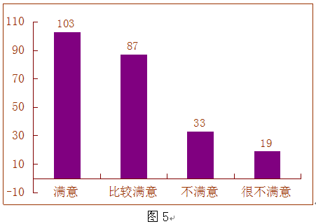 分析:對學(xué)校教育現(xiàn)狀的滿意程度調(diào)查可以看出大多數(shù)人是滿意的,比較滿意的以及滿意的人數(shù)居多,但也有一些人不滿意。所以國家應(yīng)當(dāng)加大對基層教育的投入,鼓勵大學(xué)生投身基層教育;學(xué)校應(yīng)該提升教學(xué)質(zhì)量、增加教學(xué)硬件投入。通過問卷了解到,不滿意的原因主要是學(xué)校教學(xué)設(shè)施落后、高水平教師少、教育方式不恰當(dāng)?shù)取?/p>