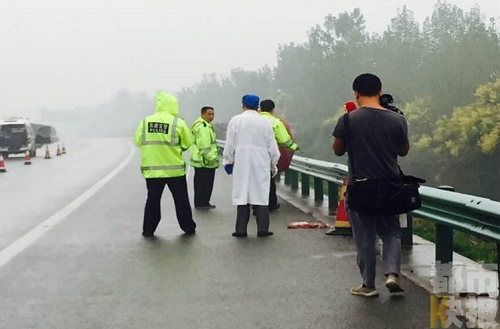 當(dāng)《都市快報(bào)午間版》記者趕到現(xiàn)場時,民警和路政工作人員已經(jīng)趕到現(xiàn)場,記者了解到,死者是一名中年男子,沒有穿衣服,而就在離死者三十米外的慢車道上,還有他的一只腿。