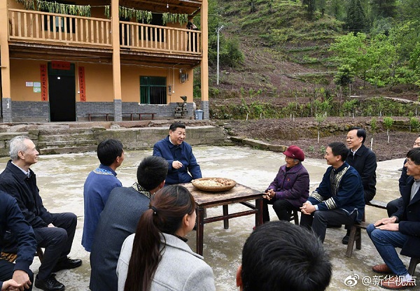 4月15日,習(xí)近平總書(shū)記赴重慶考察調(diào)研。一下飛機(jī),他就轉(zhuǎn)乘火車(chē)、汽車(chē)前往石柱土家族自治縣中益鄉(xiāng)小學(xué)、華溪村,深入農(nóng)戶(hù)家中和田間地頭,實(shí)地了解脫貧攻堅(jiān)工作進(jìn)展和解決“兩不愁三保障”突出問(wèn)題情況。