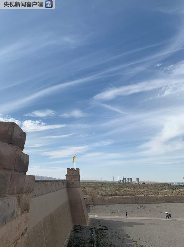 △在關(guān)城上遠眺祁連山和酒鋼。(央視記者沈忱拍攝)
