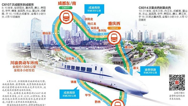 4月10日,全國鐵路實(shí)施新的運(yùn)行圖,由成渝高鐵、渝貴鐵路、成貴高鐵連接成環(huán)的川渝貴跨省動(dòng)車環(huán)線正式開行列車,這也是國內(nèi)首條跨省動(dòng)車環(huán)線。