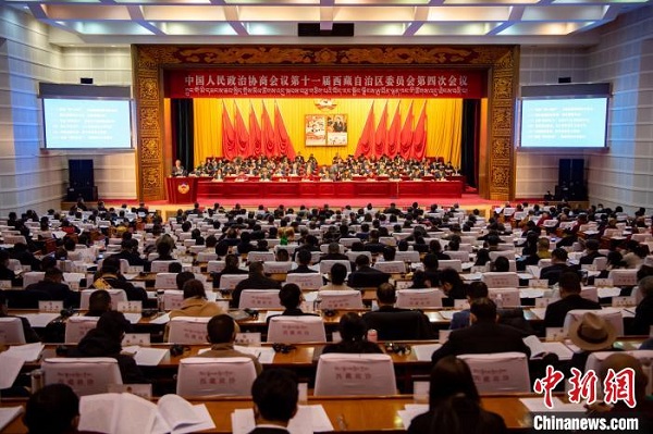 1月19日,政協(xié)第十一屆西藏自治區(qū)委員會(huì)第四次會(huì)議在拉薩開(kāi)幕。 何蓬磊 攝