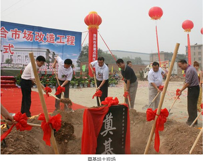 記者在網(wǎng)上查閱關于磨村綜合市場的信息時,在渭南市對外經(jīng)濟技術(shù)合作局官方網(wǎng)站上發(fā)現(xiàn),該項目于2011年8月8日開工建設。并舉行了隆重的開工奠基儀式,時任華縣縣委書記楊森明、縣長朱??〉瓤h級四大班子主要領導出席了開工典禮。副縣長康彥虎代表華縣縣委、縣政府致辭,最后華縣縣委書記楊森明宣布項目正式開工。