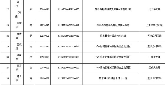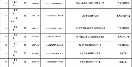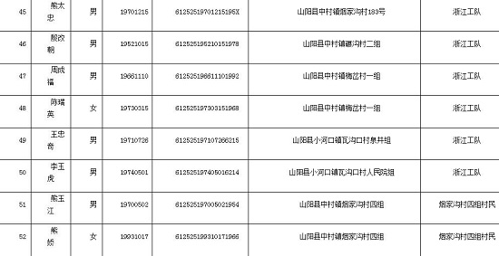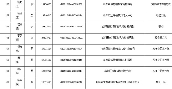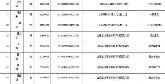 山陽(yáng)縣“8·12”山體滑坡失蹤人員名單
