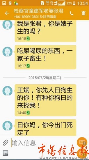 2015年8月5日,新浪微博名為“晴天格格”微博舉報“陜西華陰法院院長童建軍索賄100萬”,渭南市潼關縣檢察院任檢察官的童建軍妻子張君惡語謾罵舉報人。事件迅速在網上發(fā)酵。童建軍告訴記者,自己已經批評了愛人的錯誤行為,同時表態(tài),歡迎有關部門對自己進行調查,如有違法違紀行為,愿承擔一切后果。