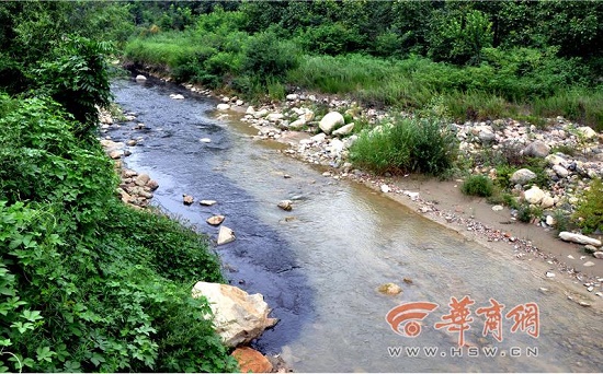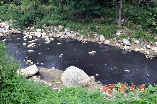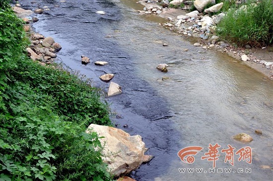 昨日,華商報記者來到位于寶鈦路清庵堡村河段的清水河看到,該河呈南北走向,站在清庵堡村的一座橋上觀察,河水兩端已變得烏黑,大量的黑色河水向北流淌數(shù)公里后匯入渭河。