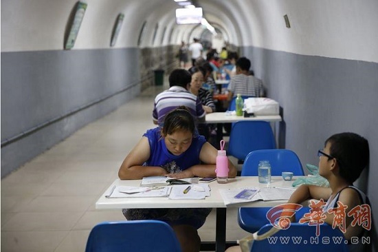 在安東街的西安人防納涼中心,不少市民在此納涼。老年人在防空洞里看報、年輕人在防空洞里上網(wǎng)、孩子們在防空洞里做作業(yè)……和往年不同的是,西安人防納涼中心除配有電視機、象棋、報紙雜志外,今年防空洞內(nèi)開通免費的無線網(wǎng)絡(luò)供市民使用。