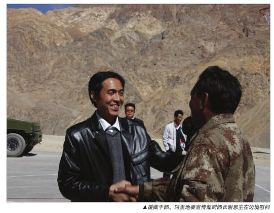 謝恩主是陜西省委宣傳部首次派來(lái)的援藏干部,在阿里宣傳部任副部長(zhǎng),主管理論宣傳。他這樣描述初到阿里的生活:白天與荒山為伍,晚上與群星相伴,午夜后在野狗的狂吠中入眠;辦公設(shè)施自己配備,住宿的水電費(fèi)自己解決;飯自己做,不做的話就下飯館吃最低10元一碗的陜西面;沒(méi)有公交車,上班搭乘的是不撕票的出租車;喝的是70℃的開水,吃的是八成熟的飯菜;出門必戴帽子、墨鏡,冬天還要加上口罩防嘴唇干裂……