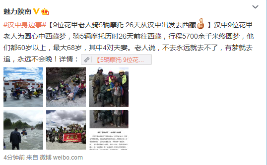 魅力陜南【9位花甲老人騎5輛摩托 26天從漢中出發(fā)去西藏】