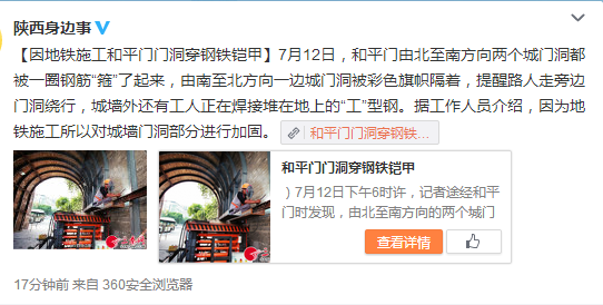 陜西身邊事 【地鐵施工 和平門門洞穿“鋼鐵鎧甲”】