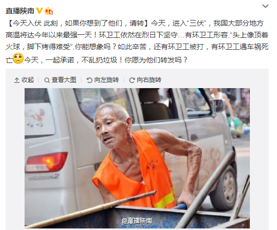 編者按:進入“三伏”,環(huán)衛(wèi)工依然在烈日下堅守。如此辛苦下,還有環(huán)衛(wèi)工被打,有環(huán)衛(wèi)工遇車禍死亡。今天,一起承諾,不亂扔垃圾!關(guān)愛馬路上的勞作者。