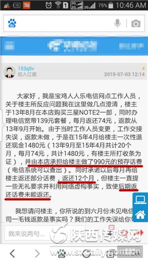 做出承諾后,電信方先是向田先生賠償了現(xiàn)金,但話費部分,至今遲遲不見返還。氣憤的田先生多次和人人樂電信網(wǎng)點負責人取得聯(lián)系,得到的都是消極回應,他還撥打10000號中國電信客服,試圖獲得解決方法,卻被告知,問題已經(jīng)登記,會盡快與田先生取得聯(lián)系,但卻遲遲不見回復。