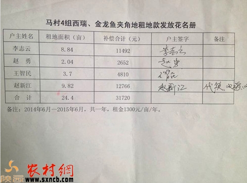 馬村4組西瑞、金龍魚(yú)夾角地租地款發(fā)放花名冊(cè)