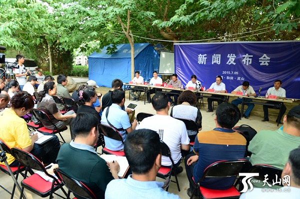 7月5日,自治區(qū)抗震救災(zāi)前方指揮部新聞發(fā)布會現(xiàn)場。
