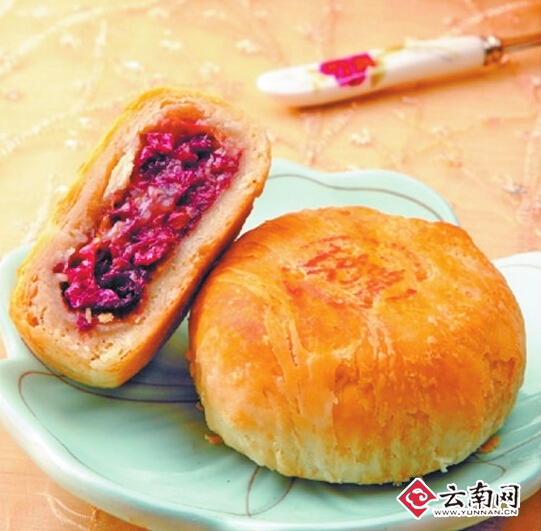 《標(biāo)準(zhǔn)》明確,滇式月餅是以小麥粉或雜糧粉(一種或幾種)為主要原料,添加白砂糖、雞蛋、食用油脂等,并配以相應(yīng)的輔料,經(jīng)制餡(或不制餡)、制皮、包餡或不包餡、成型、焙烤、冷卻、包裝等工藝加工而成的具有云南地方風(fēng)味特色的月餅。滇式月餅按產(chǎn)品含餡或不含餡分為含餡月餅和串餅月餅。含餡月餅按餅餡中使用的主要原輔料分為果仁類月餅、蓉沙類月餅、鮮花類月餅、果蔬類月餅、火腿月餅、牛肉干巴月餅、雜餡月餅等。