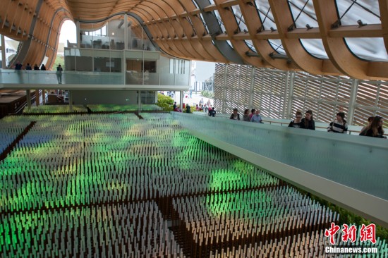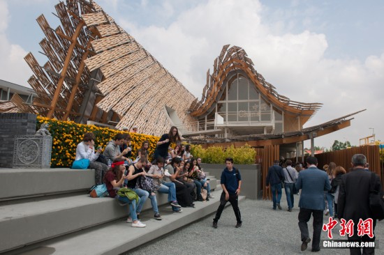 當(dāng)?shù)貢r(shí)間5月26日,意大利米蘭,在2015米蘭世博會(huì)上,以金色麥浪造型亮相的中國(guó)館吸引了大批游客,場(chǎng)館內(nèi)兩萬(wàn)多根LED發(fā)光“麥稈”組成的“希望的田野”讓游客紛紛拿出手機(jī)和相機(jī)拍個(gè)不停。除了場(chǎng)館內(nèi)的東方元素,館外中餐廳的美食也吸引了很多外國(guó)游客,他們紛紛表示很喜歡中國(guó)食物,被食客們選擇最多的則是餃子和炒河粉。記者 李卿 攝
