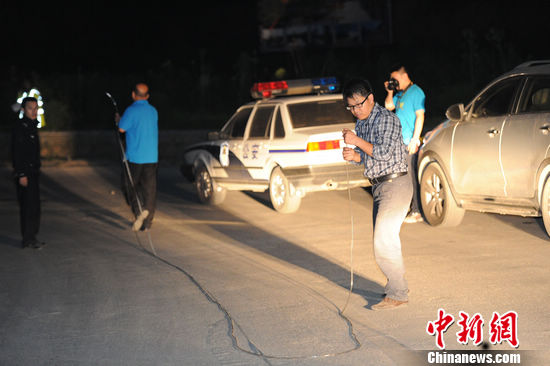 圖為幾名工作人員正在事發(fā)路段勘察。