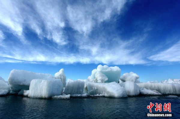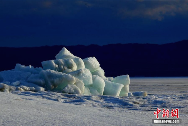 新疆網(wǎng)訊每年4月中下旬,冬季形成的烏倫古湖冰面就開始消融,斷裂成一片片巨大的冰塊,由于近幾日的大風,這些冰塊相互碰撞、抬升、重疊,然后堆積在湖岸一側(cè),特有的湖區(qū)冰丘或風積冰山最高時可達十幾米,讓人不禁感慨大自然的鬼斧神工。 據(jù)悉,由于受氣候條件的影響,風積冰山的場景并非每年都能見得到,只有在春季持續(xù)刮風時才能在湖邊出現(xiàn)。 總面積約1000平方公里的烏倫古湖是新疆著名的旅游風景區(qū)和漁業(yè)生產(chǎn)基地,湖內(nèi)盛產(chǎn)的“白斑狗魚”等珍貴冷水魚。