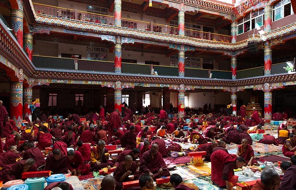 僧人們聚集在佛學(xué)院最大的寺廟中學(xué)習(xí)。在其中,孩子和大人都坐在地毯上,吟唱著詩歌一般的佛經(jīng)。(來自:騰訊新聞編譯)
