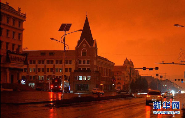內(nèi)蒙古阿爾山驚現(xiàn)紅色天空下泥雨