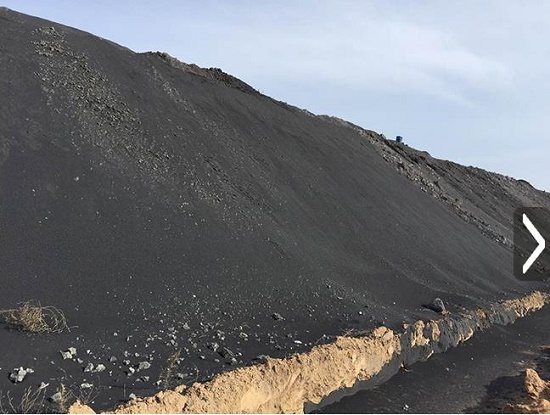 4月7日,記者來到中煤榆林公司生產廠區(qū),看到每當有車輛經過,就會揚起不少的煤塵。在污染現(xiàn)場,記者看到廢渣已經形成了一個占地兩百多畝,高數(shù)十米,重約數(shù)百萬噸的小山。且旁邊有鏟車在開辟新的廢渣場地,附近沙漠上的植被因被大風刮起的粉塵覆蓋而變黑。
