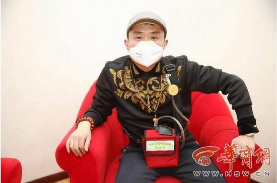 2014.12.22日,苗阜受邀“綠色和平”形象代言,檢驗(yàn)西安空氣質(zhì)量,他將佩戴一個(gè)特殊的設(shè)備----“機(jī)器肺”,來(lái)模擬測(cè)量自己每天呼吸空氣的質(zhì)量。 13個(gè)小時(shí)的測(cè)試,卸下“機(jī)器肺”,拆開(kāi)呼吸頭,取出測(cè)試膜一看,真是嚇一跳---那個(gè)測(cè)試膜已經(jīng)變成土灰色,看來(lái)我們每個(gè)人每天都用自己的肺過(guò)濾著空氣。(記者 陳團(tuán)結(jié))