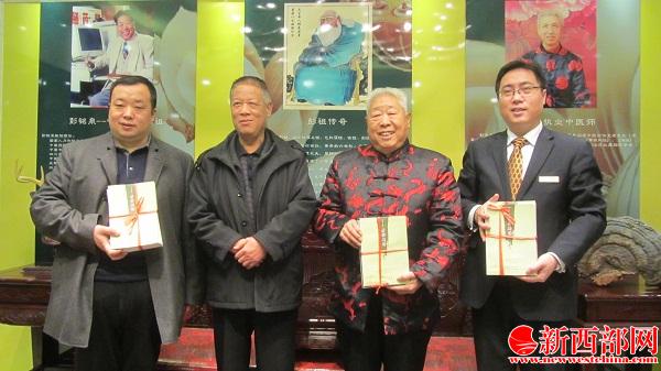 卜廣民會(huì)長(左二)向彭亭彬董事長(左一)、彭銘泉教授(右二)、張鶴總經(jīng)理贈(zèng)送著作。新西部網(wǎng) 王順利攝
