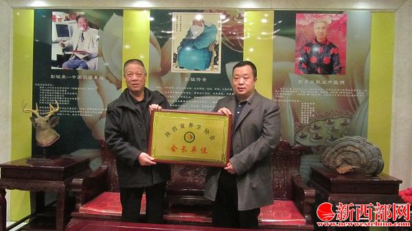 陜西省養(yǎng)生協(xié)會(huì)批準(zhǔn)西安四季華庭酒店為會(huì)長單位,卜廣民會(huì)長(左)向彭亭彬董事長授牌。新西部網(wǎng) 王順利攝