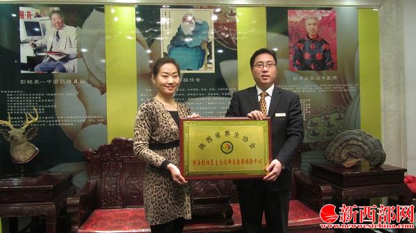 西安四季華庭酒店被陜西省養(yǎng)生協(xié)會(huì)批準(zhǔn)為陜西彭祖養(yǎng)生文化研究會(huì)暨體驗(yàn)中心,陜西省養(yǎng)生協(xié)會(huì)秘書長李靖(左)向西安四季華庭酒店總經(jīng)理張鶴授牌。新西部網(wǎng) 王順利攝