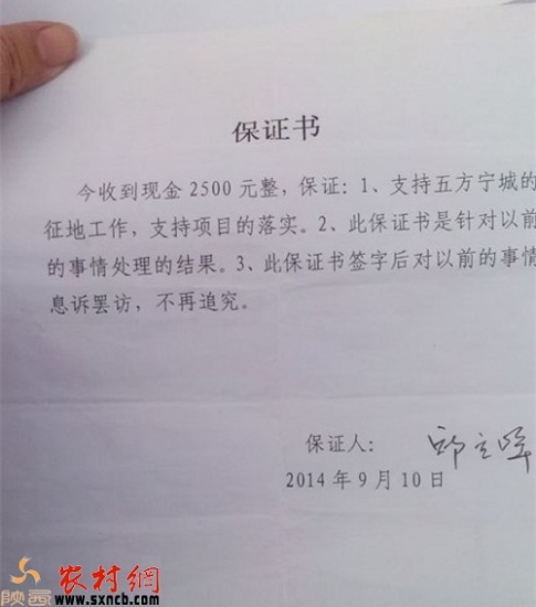 不上訪可領(lǐng)錢,但須簽寫保證書