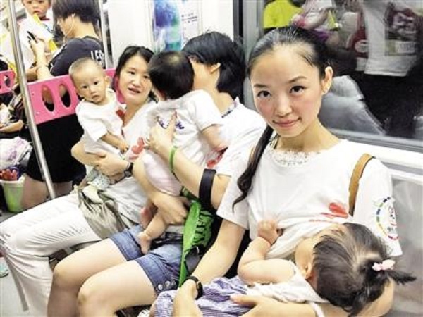 昨日,在6號(hào)線上,20位媽媽集體哺乳。