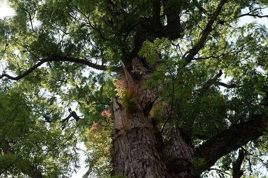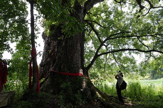 2016年06月23日,貴州省遵義市,在貴州省余慶縣白泥鎮(zhèn)新寨村,看到該村同心組一株樹干直徑約3.8米、樹干中下部周長為14.8米、樹高約20米的黃梨古樹。古樹需要9人手拉手才能抱住。
