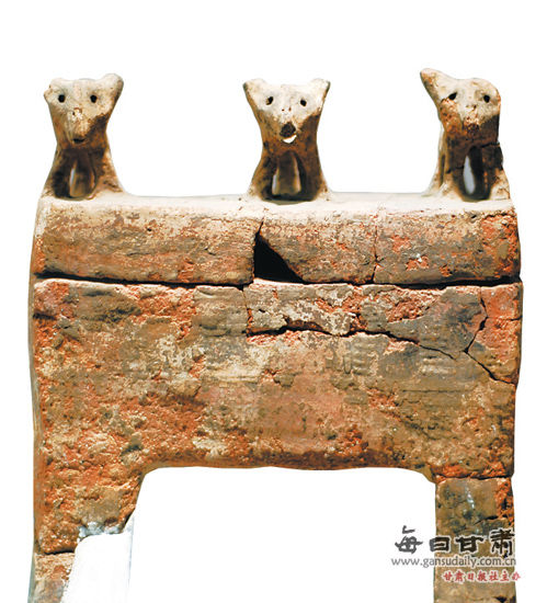 這是在四壩文化類型的玉門火燒溝遺址出土的陶鼎。它的出土將許多未解秘密展現(xiàn)在了人們面前,創(chuàng)造了四壩文化的先民,究竟是一支怎樣的部族呢?既然他們在陶鼎上塑有猛犬,似乎是個以犬為圖騰的部族,他們是否就是古史中所說的犬戎呢?