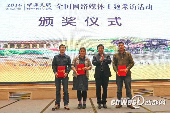 陜西省委網(wǎng)信辦副主任張琳為獲獎(jiǎng)?wù)哳C獎(jiǎng)