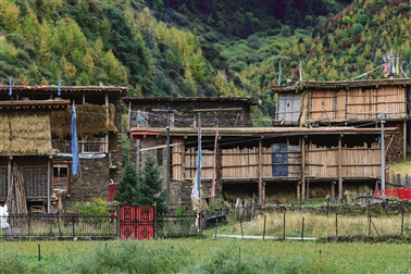 在徹底了解藏式碉樓之前,我們有必要先仔細(xì)看看村子的格局,因?yàn)榈飿堑倪x址與村子的格局有著密不可分的聯(lián)系。它們或沿地勢(shì)平坦的瑪柯河畔修建,或依山就勢(shì)成階梯狀修建,整個(gè)建筑群與山水間形成了一幅優(yōu)美的山水畫卷。