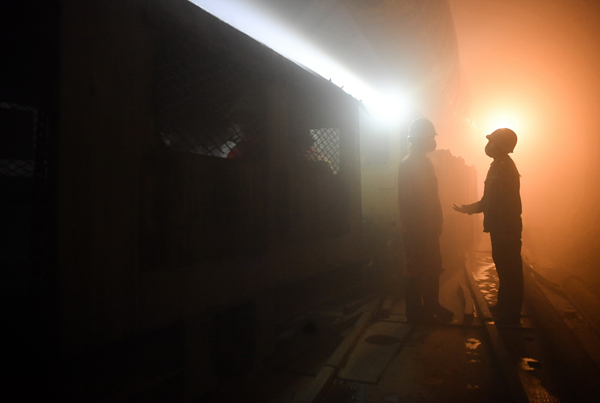 2月22日,工人在陜西引漢濟(jì)渭工程秦嶺輸水隧洞施工現(xiàn)場(chǎng)工作。