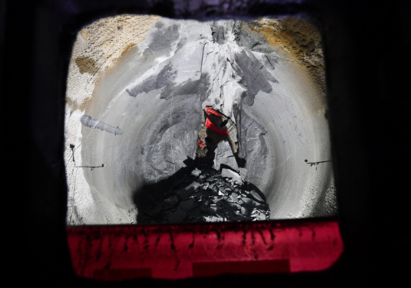 2月22日拍攝的陜西引漢濟(jì)渭工程秦嶺輸水隧洞貫通處。
