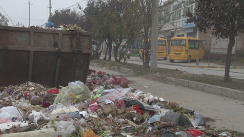 11月16日,在車行至咸陽市渭城區(qū)底張街道辦事處街道北口時,一大堆生活垃圾映入眼簾,成為第一道搶眼的“風(fēng)景”。在記者對群眾走訪過程中,先后在底張街道辦事處墻外、農(nóng)貿(mào)市場內(nèi),幼兒園門口、街道南北入口等處發(fā)現(xiàn)垃圾箱已滿,大部分垃圾隨意倒在路邊,嚴(yán)重影響市容和群眾生活。