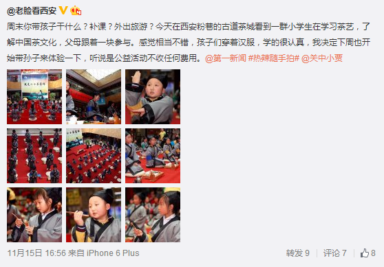 ?編者按:連續(xù)幾個(gè)月開(kāi)展學(xué)習(xí)茶藝,了解中國(guó)茶文化的少兒體驗(yàn)活動(dòng),更有父母的陪同。傳承茶藝文化,傳承中華民族的優(yōu)秀文化,這樣的做法不僅可取更應(yīng)該廣泛應(yīng)用。