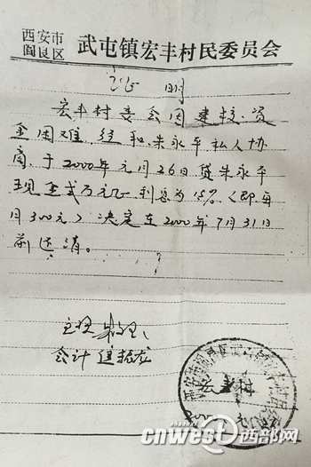 民生熱線:閆良區(qū)武屯鎮(zhèn)宏豐村村委會借村民2萬元15年不還