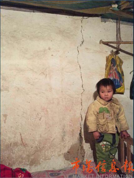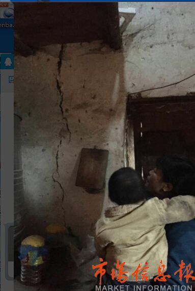 村民郝明葵的家里,房梁已經(jīng)垮掉,下面全用木頭支撐著?!皼](méi)挖煤之前,只是有一些輕微裂縫,挖煤后,就開(kāi)始變得嚴(yán)重,現(xiàn)在最害怕的是垮塌,特別是每逢下雨墻壁就倒”郝明葵擔(dān)心的說(shuō)。