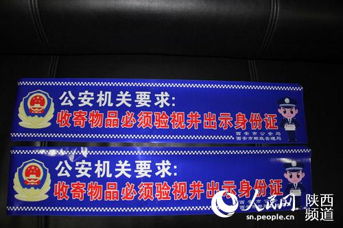 西安市公安局印制的一萬余張“公安機關要求:收寄物品必須驗視并出示身份證”的警示提醒標語將被張貼到西安市內各網(wǎng)點和快遞車輛。