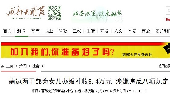中央八項(xiàng)規(guī)定三令五申,嚴(yán)禁黨員干部大操大辦婚宴,然而靖邊縣農(nóng)業(yè)局、國稅局兩單位干部卻涉嫌頂風(fēng)作案豪辦婚宴,令人驚訝。本中心工作人員將持續(xù)關(guān)注此事。