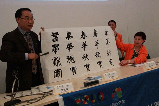 著名書法家衛(wèi)雙良先生以《中國文字與書法》為題,講述了“中國書法是繪畫,能以豐富多彩的形式感動人心;也是音樂,能顯示出和諧的節(jié)奏與韻律?!钡臅ㄌ厣?。他以篆、隸、楷、行、草五種書體,向現(xiàn)場的學員們形象地展示了書法的演變和特點。