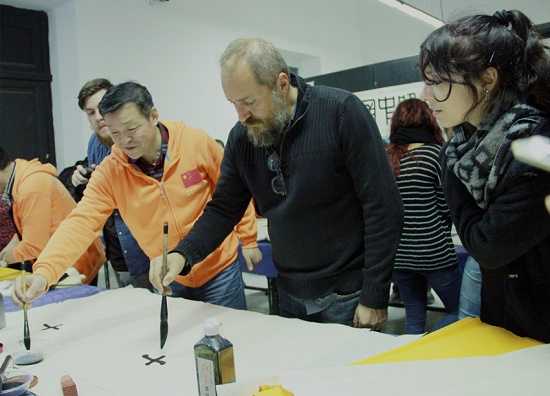 會上歐洲設計學院羅馬分校校長AntonioVenece先生說:“非常感謝陜西代表團的到來,讓我們今天近距離接觸到中國傳統(tǒng)文化,并擁有與大師學習書法的機會”。