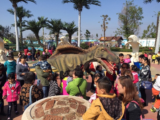 記者以給孩子送水為由進(jìn)入了歡樂海歡樂海內(nèi)的家長一邊給孩子拍照,一邊相互抱怨購票的不值。家住臨渭區(qū)西五路的楊女士說,所謂的”恐龍主題公園“規(guī)模之小超出了她的想象,如果不是為了滿足孩子的要求,她絕對不會(huì)買票參觀,宣傳的多好,這個(gè)龍那個(gè)龍,結(jié)果呢?就一個(gè)。在園內(nèi),主辦方以40元的價(jià)格在出售恐龍模型,很多家長都覺得價(jià)錢過高,但是孩子哭鬧著非要買,作為家長也是沒有辦法。